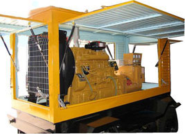 阜城柴油发电机组/移动柴油发电机组设计独具创新,机动性高、重心低、制动安全、制造精良、外形美观。 阜城拖车车架采用槽梁焊接成框架结构,节点选择合理、强度高、刚性好;同时装有钢板弹簧悬架结构;拖车采用高度可调节插销式牵引架,适用于各种高度牵引车;采用圆形钢管焊接直通式车轴,结构紧凑,安全可靠;车架四角设有机械式支撑装置,配备惯性行车制动、驻车制动和脱离应急制动,确保机组在各种状况下的安全;车架前端设有支撑轮,具备承受机组垂直载荷的功能的同时还具备导向功能;整车配备转向和刹车指示灯,同时装有尾灯标准插头